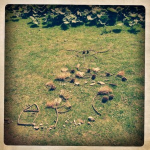 Nästa projekt blir land art. Deltagarna låter sig inspireras av allt som de har sett under dagen.