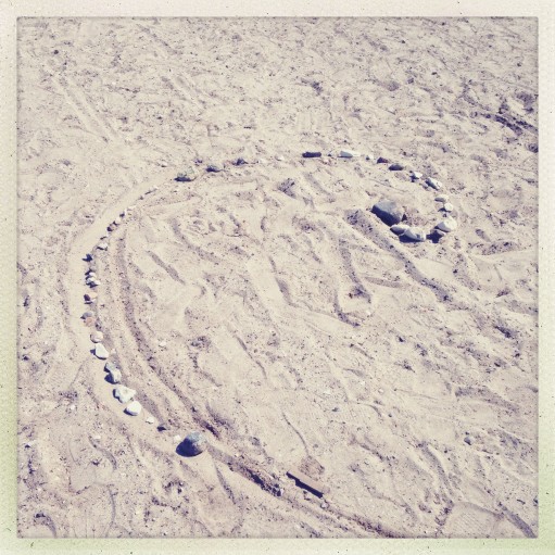 Vi skapar en spiral enligt talföljden. Det blir ett kollektivt projekt som främjar naturkunskap och konstintresse. Först markerar en pojke talföljden med fötterna i sanden, en annan deltagare ritar spiralen med en pinne och alla hämtar stenar och pinnar för att bygga den stora spiralen. Roligt!