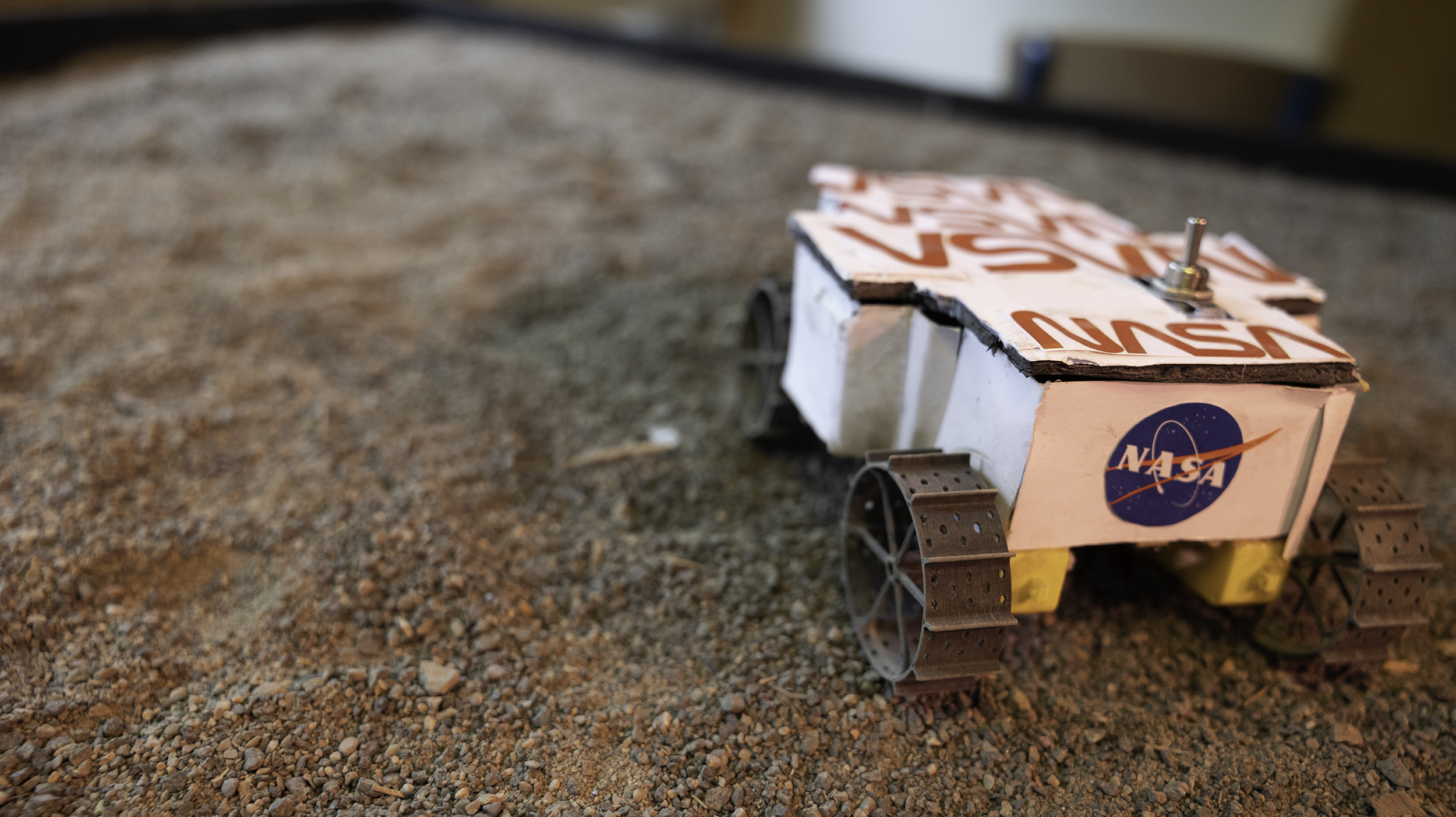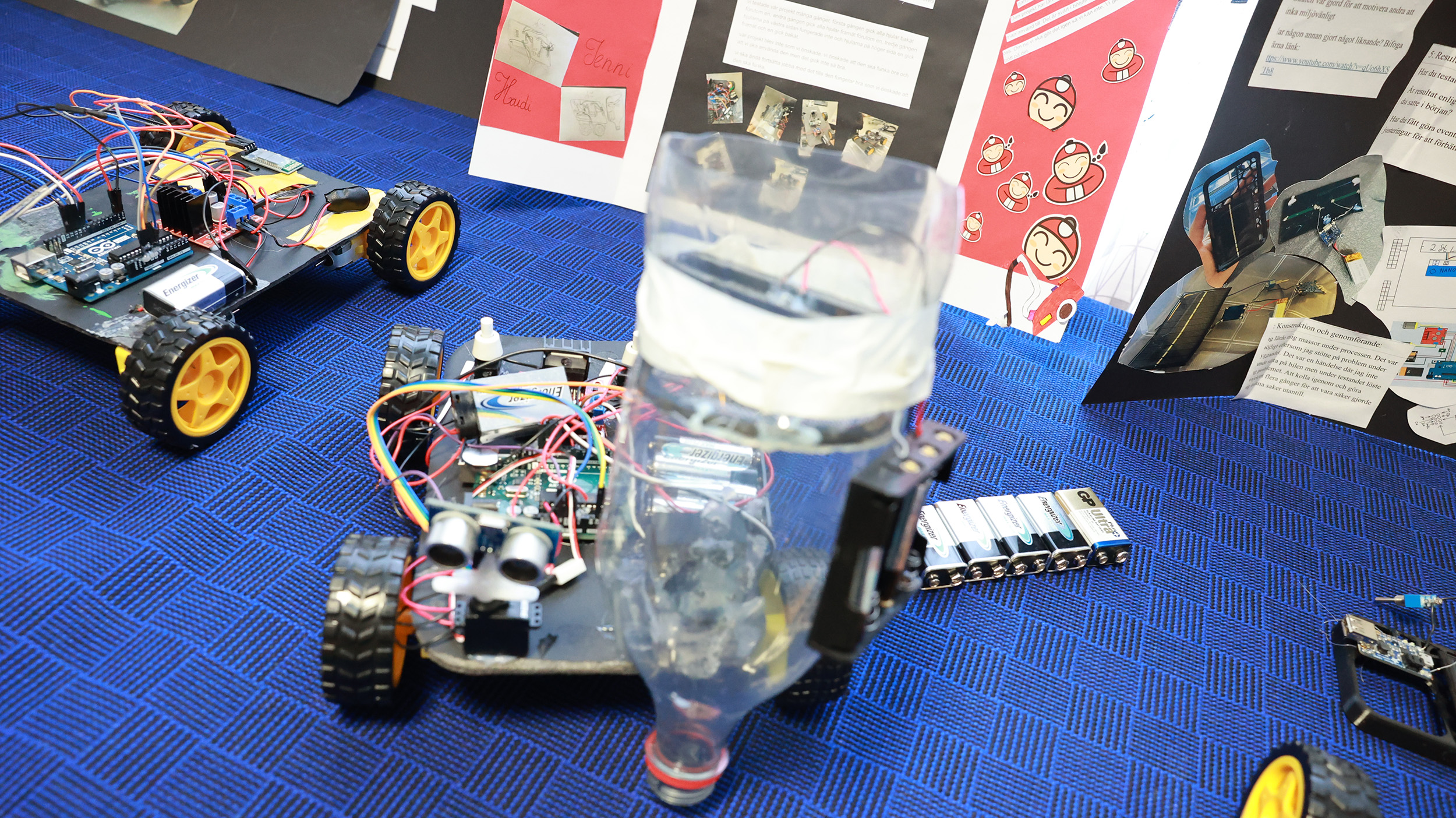 I en av salarna hänger handgjorda planeter och girlanger i taket, på utställningsbord visas affischer, skulpturer, flervåningshus i miniatyr och även självkörande bilar upp. I en annan del av rummet hänger klänningar och byxor som några gjort i slöjden.