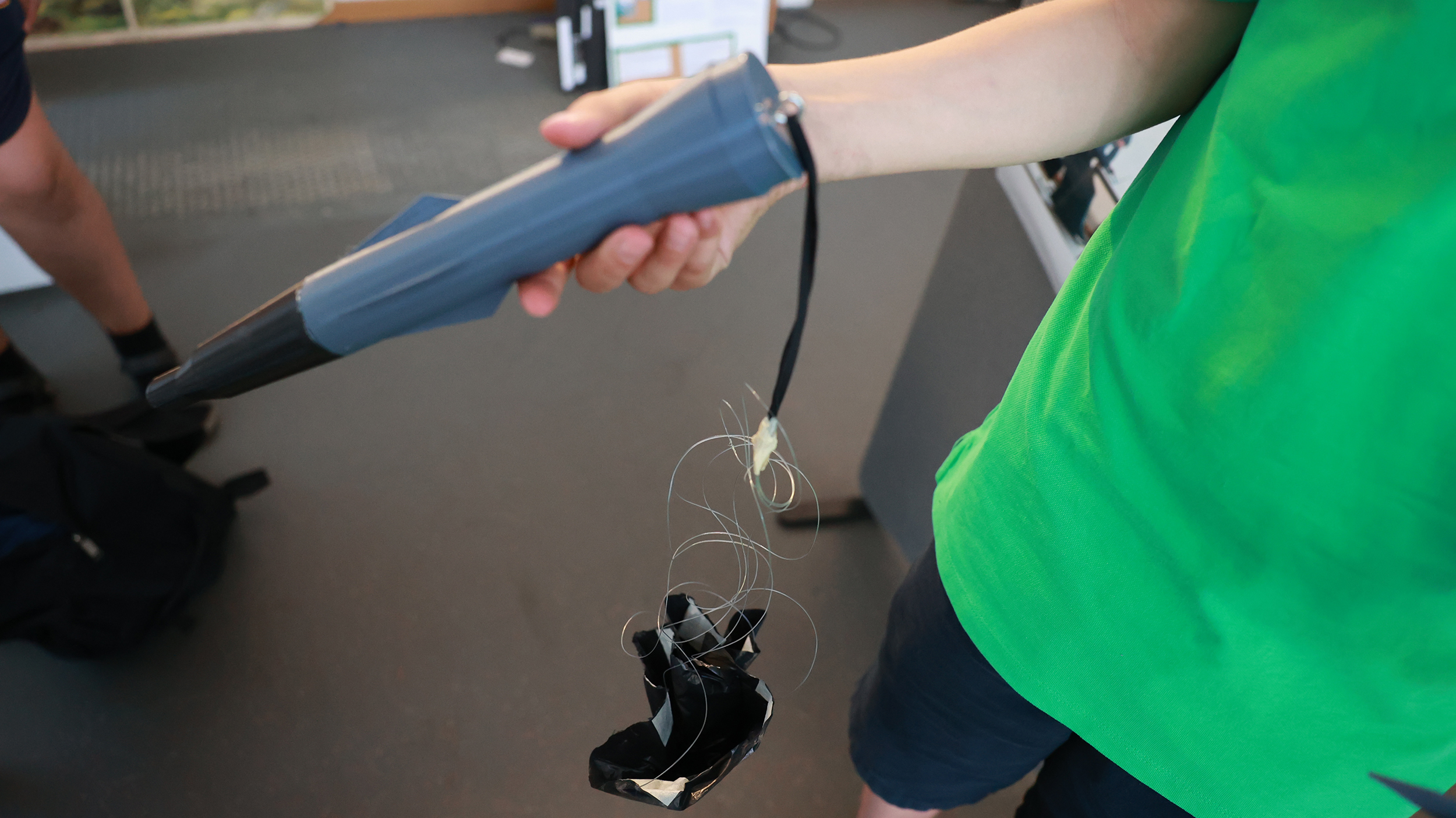 Högstadiet samlades på fotbollsplanen utanför skolan och hejade på i en gemensam nedräkning när båda raketerna åker nästan 100 meter upp i luften. Men ingen av fallskärmarna fälldes ut.
