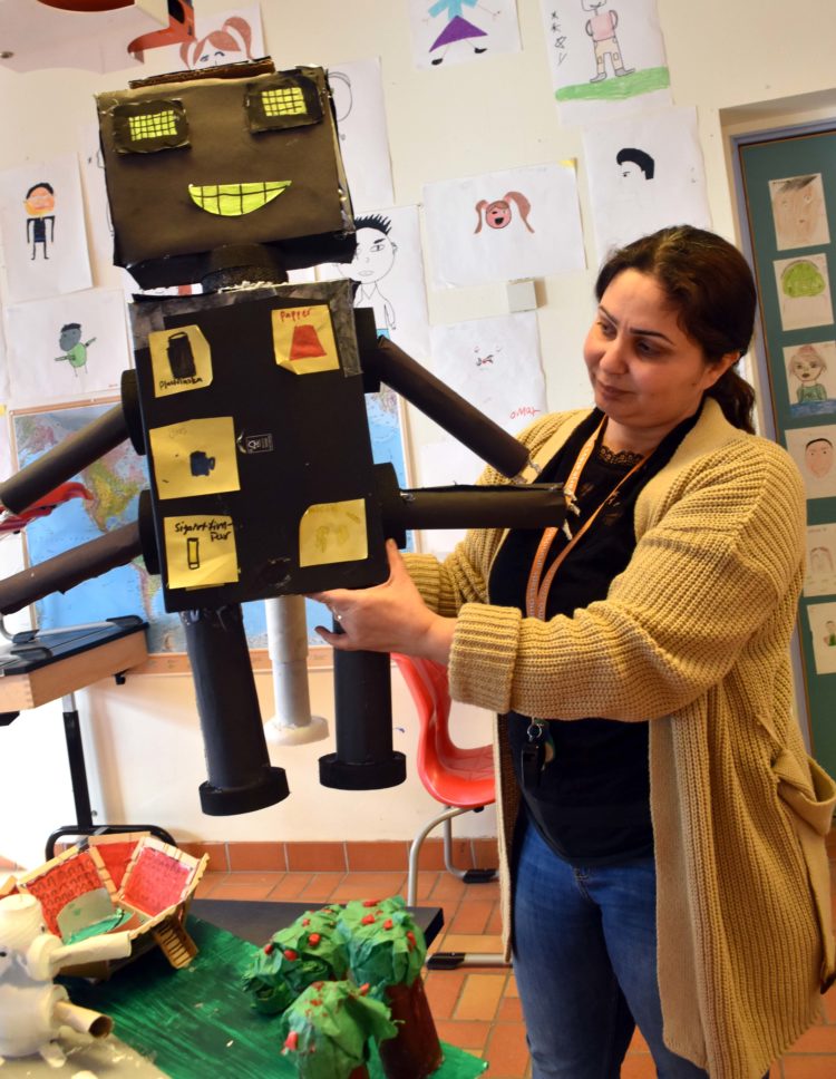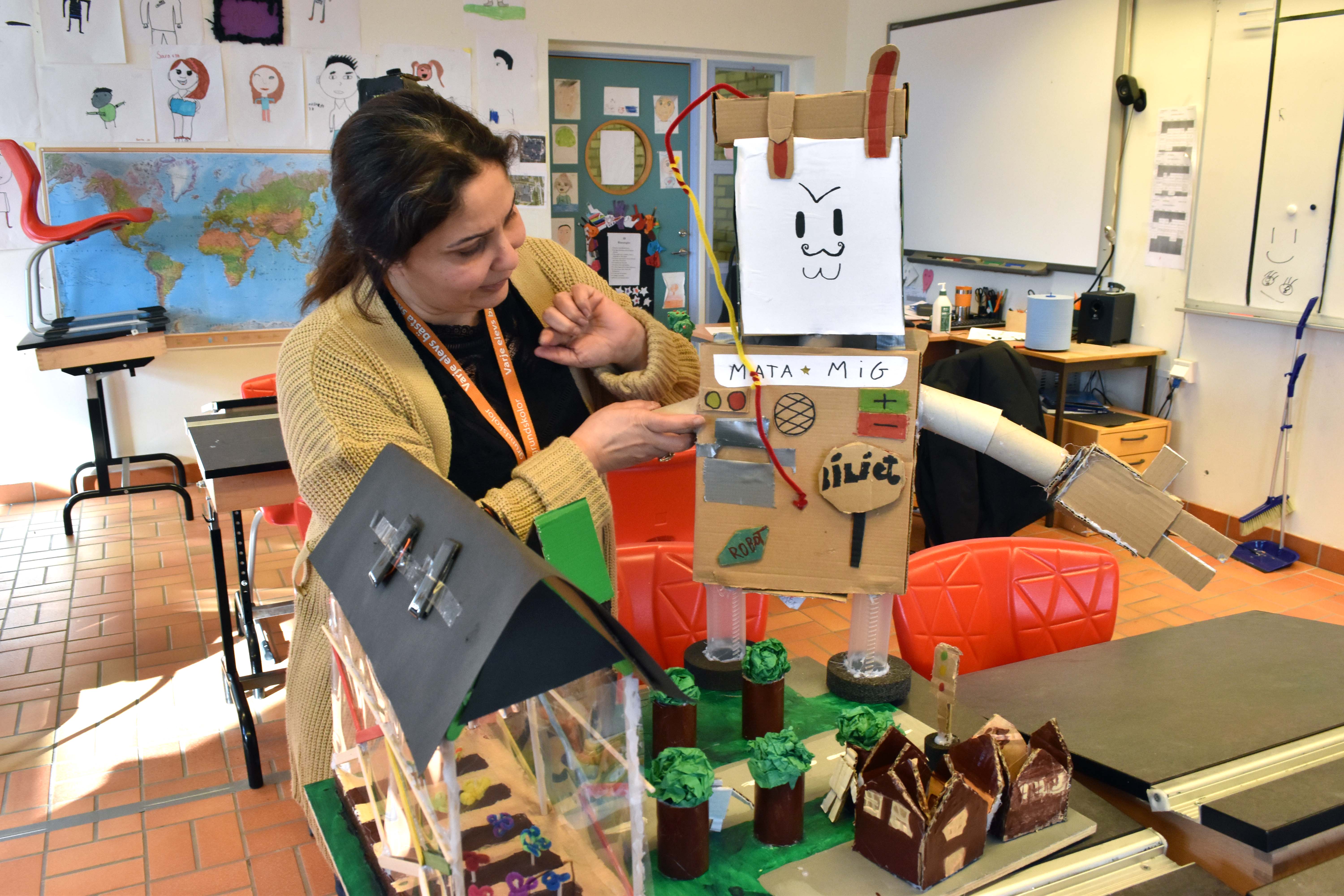 – Det är första gången jag jobbar så här som lärare. Det var tufft, men när jag såg resultatet såg jag fler fördelar än nackdelar. Du måste fånga allt eleverna tänker på och du måste förbereda dig mycket för att kunna vägleda dem. Jag ville inte säga åt dem vad de skulle göra, utan vägleda så att de själva kommer på idéer. Och det är inte lätt. Men fastnade vi i något kunde vi titta på det tillsammans. Vi sökte fakta tillsammans i en process och då fastnar kunskapen på ett annat sätt, säger Rana Abi Haidar.