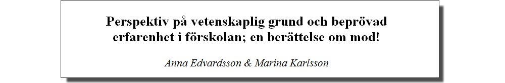 Inför kommande läsår ska en ny grupp på förskolan försöka få perspektiv på vetenskaplig grund och beprövad erfarenhet i förskolan. Visserligen inte med stöd av Malmö Högskola och med möjlighet till högskolepoäng.