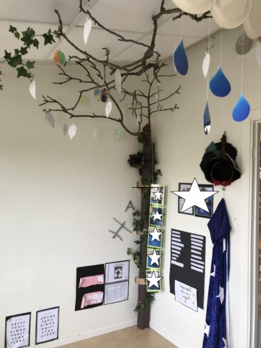 På väggen har hon och barnen hängt upp ett bokträd där de hänger upp alla ord som de inte har förstått och är nyfikna på.