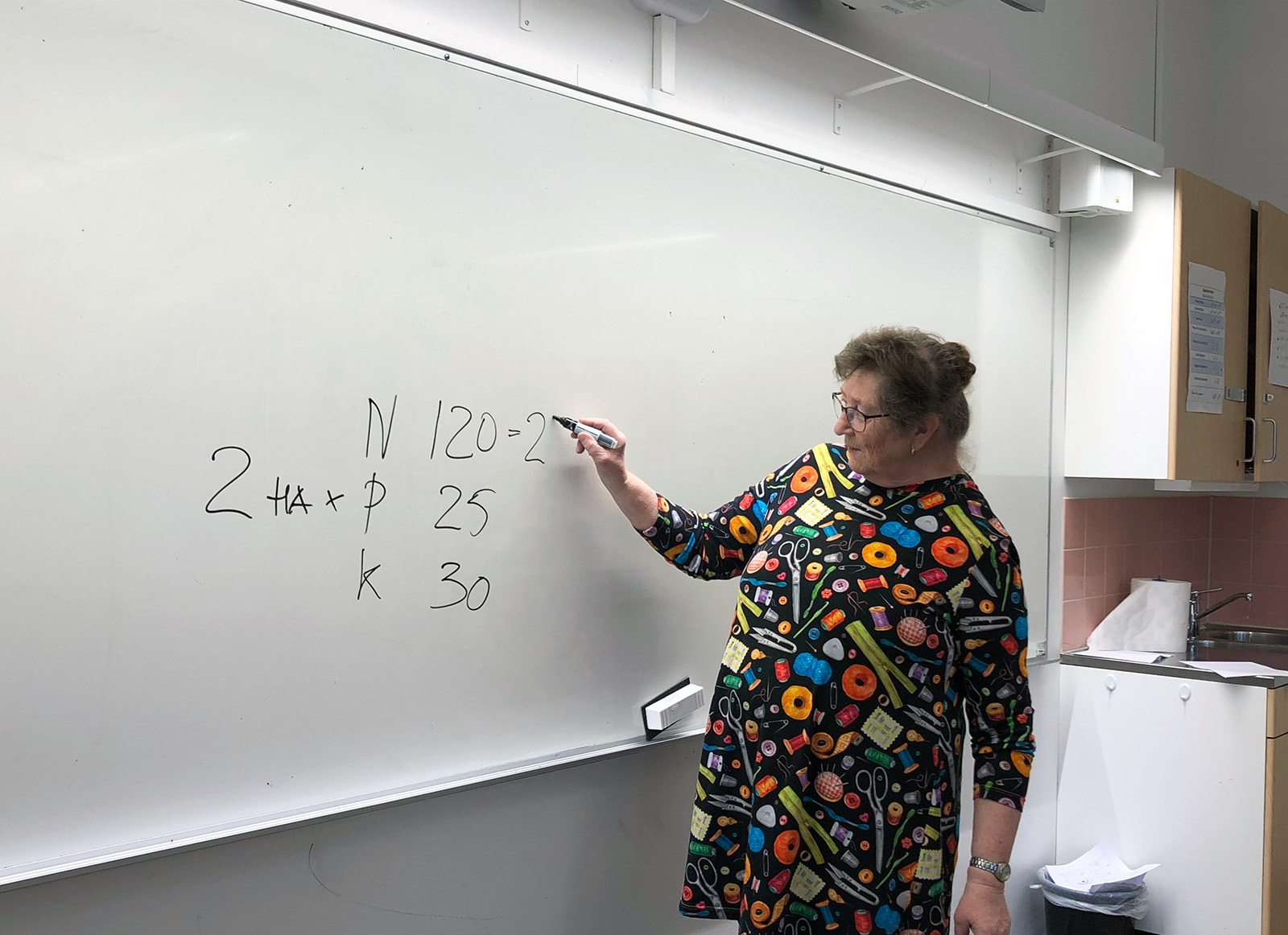 Hennes mattelektioner kan se olika ut, beroende på vilket område hon föreläser i och om eleverna har liten eller mycket förkunskap om lantbruk.