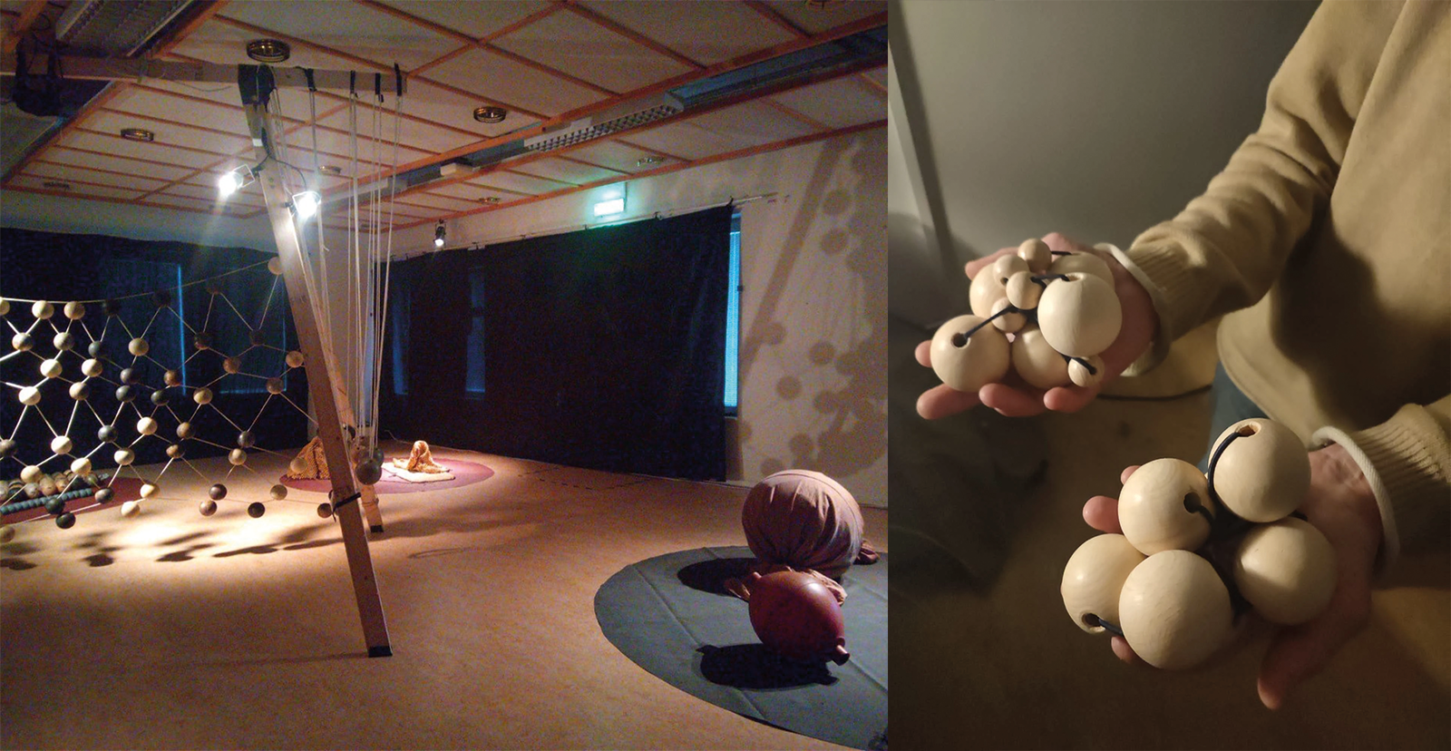 – Vi försöker hela tiden hitta sätt att skapa kontakt med dem i rummet. Vi letar hela tiden efter material som ger någon form av återkoppling. Om jag gör något, vad får jag då tillbaka? Hur kan vi kommunicera med det här materialet mellan oss? Hur kan jag uppleva mig själv som delaktig i något större, förklarar hon och häller upp en kopp kaffe.