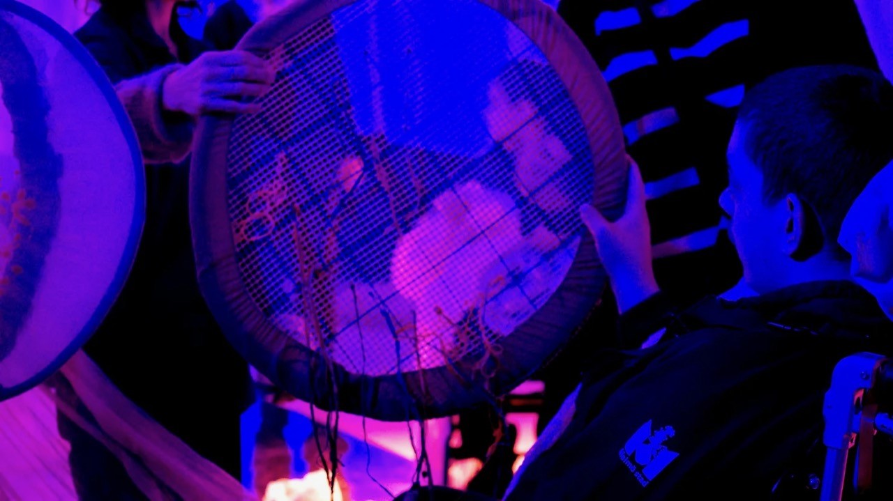 Fönsterna är täckta med mörkläggningsgardiner och rummet har en dämpad belysning. Majoriteten av eleverna tar sig runt i rummet med rullstol och stöd av elevassistent. I mitten av rummet reser sig en stor bock med ett nät med stora träkulor. När eleverna drar händerna genom kulorna skapas ett rasslande ljud. En elev sluter ögonen och testar hur träkulorna känns mot ansiktet. Denna vecka är temat runda former.