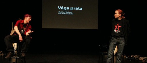 – Vi är noga med att prata med lärarna innan föreställningen, vi vill att de ska slappna av och låta oss ta ansvar för om något händer. Vi står inte och pratar om kondomer i en upplysningskontext, men vi pratar om och gestaltar det på olika sätt. Det har gjort att vi faktiskt fått kondomer kastade på oss på scen.