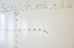 Johan programmerar med barn i åk. 2-9 och ibland även på fritids. De använder sig av gratisprogrammet Scratch. Skapandet i Scratch bygger bland annat på koordinatsystem med x- och y-axlar.