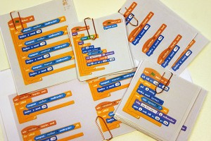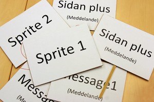 Han har även tillverkat fusklappar till barnen. På dem står det exakt vad eleven kan skriva i programmeringskoden för att deras figur exempelvis ska röra sig framåt.