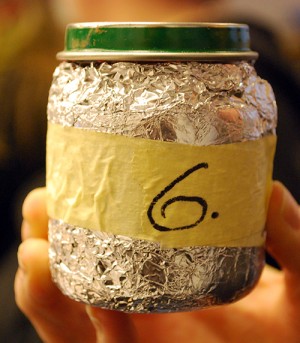 Katarina skickar sedan runt barnmatsburkar inslagna i folie. Hon har gjort hål i locken och fyllt burkarna med olika innehåll. Deltagarna ska gissa vad som är i (burkarna innehåller t.ex. honung, såpa och curry).
