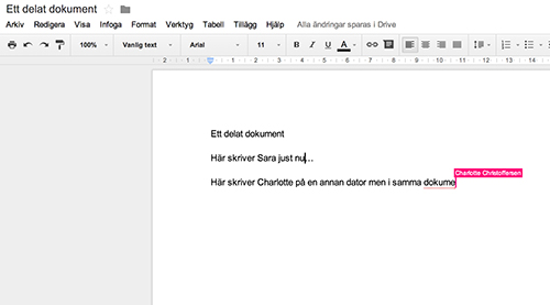 – Genom att arbeta i delade dokument slipper man e-posta runt olika sparade versioner. Det blir samma identiska dokument. Som pedagog kan dessutom se vem som har skrivit vad. Det kan förenkla bedömningen av grupparbeten.