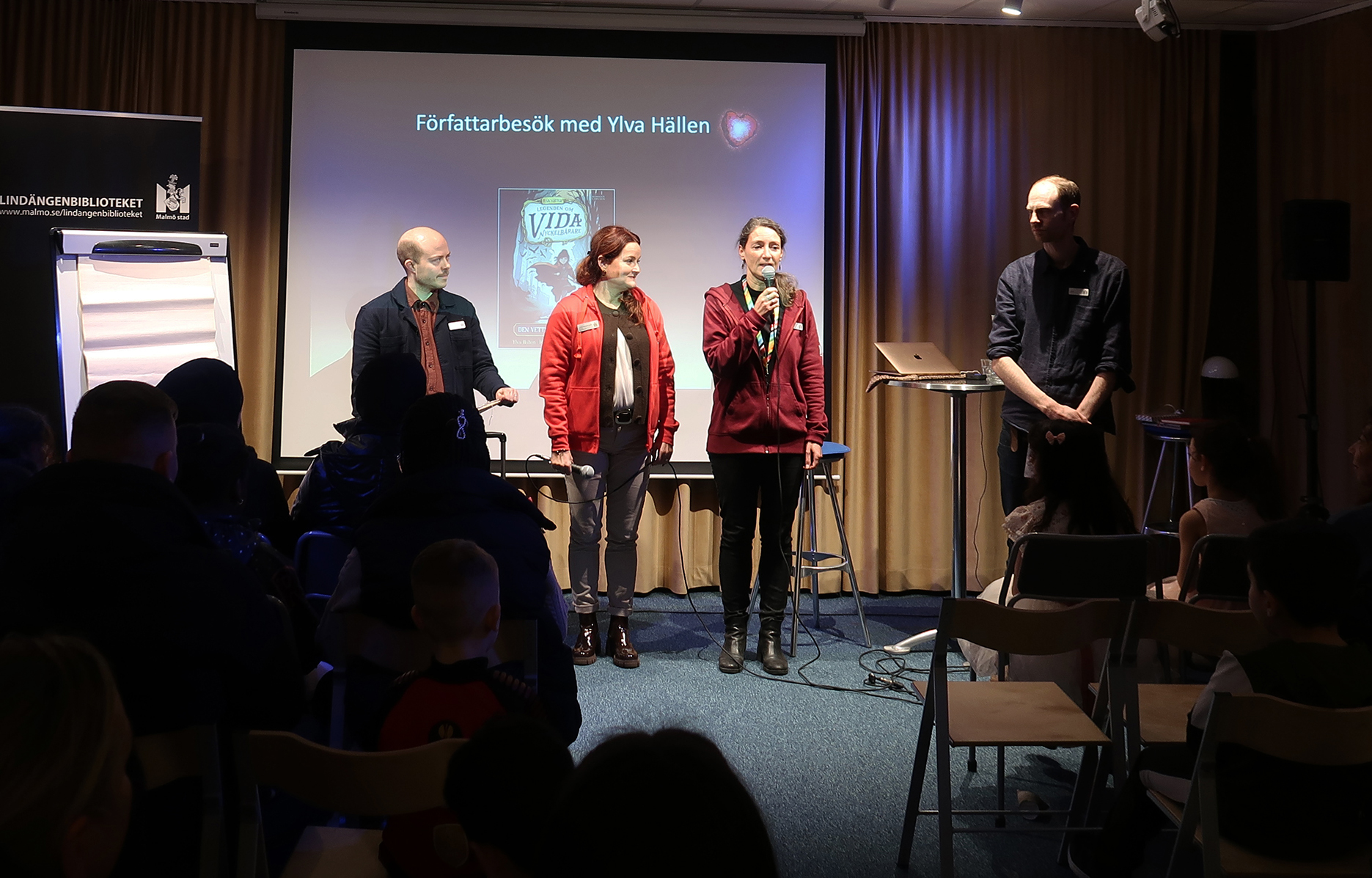 I publikhavet var det pirrig stämning under onsdagskvällen inför barnboksförfattaren Ylva Hällens besök, som många nog också kände igen från SVT Barn. Innan hon drog igång hann bibliotekarien Jonas Eriksson berätta om biblioteket och att det ju inte bara lånas ut böcker utan även instrument och verktyg.