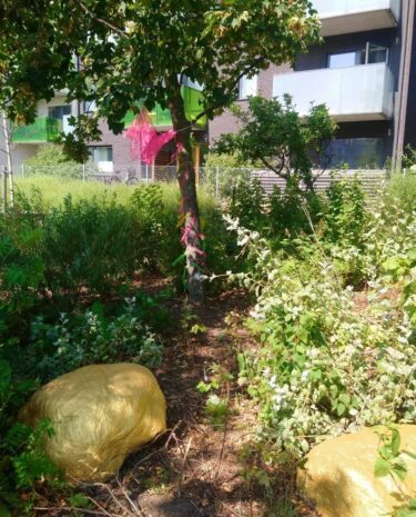 Efter att ha introducerat skogen för barnen har det skett en ännu större förvandling av platsen. För att förstärka den mystiska stämningen i skogen tog jag med en bärbar högtalare som spelade bakgrundsmusik. Jag såg att barnens kroppsspråk förändras när musiken var på. Ett barn sa ”Hör ni, det är halloween i skogen”. Snart vaknade olika karaktärer upp i skogen. Barnen lekte häxor, monster och cowboys. Nästa steg var att dekorera skogen.  Min kollega kom på att vi kunde måla stenarna i guld. Dessa stenar blev som en magisk portal in till skogen. Gamla textilier som färgade lakan och tyll förgyllde också skogens utseende.