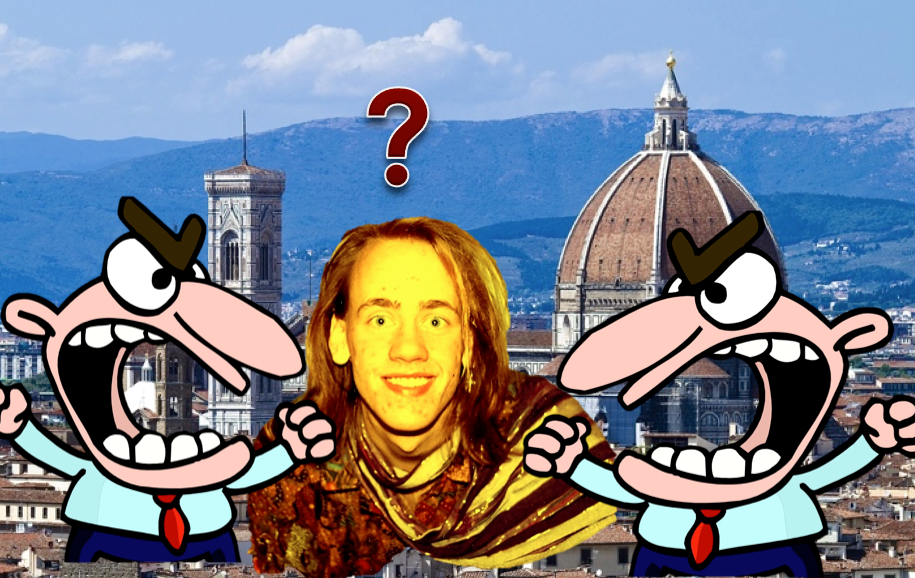 En förmiddag när jag kom in i vårt kök satt samtliga italienare där och drack kaffe. En av italienskorna frågade mig om jag inte ville äta middag med henne och hennes vännina samma kväll (pojkarna skulle ut på någon form av studentikost galej). Jag blev väldigt glad och tackade naturligtvis ja. Snart insåg jag att jag genom att acceptera hade brutit någon osynlig regel för gossarna som inledningsvis varit så snälla och gästvänliga förvandlades redan samma dag till fientliga surpuppor. De slutade hälsa, sa elaka saker bakom min rygg som de trodde att jag inte förstod (eller kanske ville att jag skulle förstå). De satte till och med upp elaka lappar på min dörr. Situationen blev till slut ohållbar och jag flyttade till en annan lägenhet. När jag återgav det inträffade för en av mina lärare på språkskolan, en riktig florentinska i päls och gucciskor, skrattade hon. Hon förklarade att jag naturligtvis borde ha tackat nej till middagen. De italienska männen såg som sin plikt att skydda de italienska flickorna från depraverade svenskar och att mitt accepterande av middagsinvitationen i deras ögon varit en krigsförklaring.