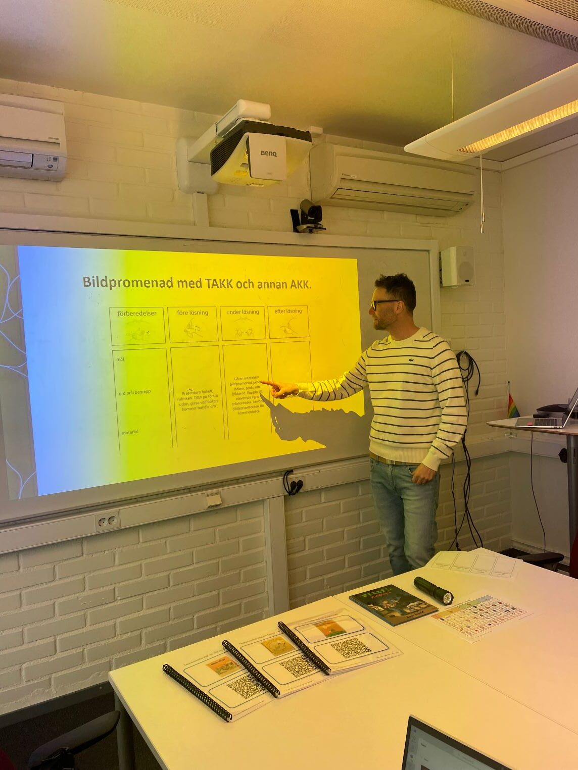 Just nu håller vi i kursen TAKK och annan AKK steg 2 som startat upp i mars. Här får deltagarna prova på att arbeta dialogiskt med bilder och böcker med stöd av AKK.