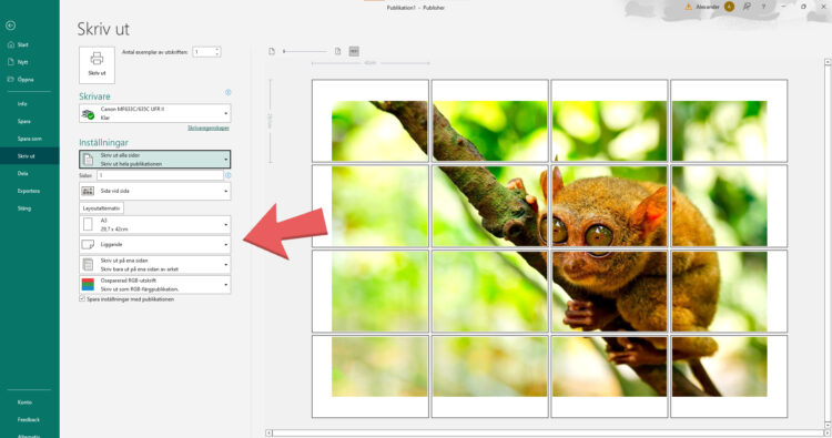Steg 6: Tryck på Skriv ut (ctrl + P). Se till det är A3, färg och att det bara skrivs ut på ena sidan. Nu är bilden redo att skrivas ut.