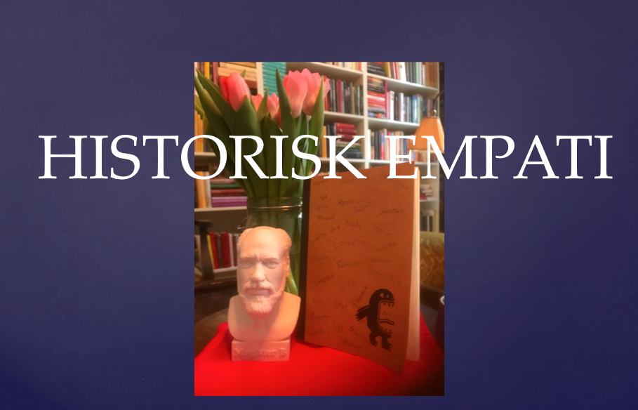 Utifrån min glädje över dem är det lätt att uppfatta mig som aningen narcissistisk. Den första gåvan är en är en byst av mig själv och den andra är en bok där eleverna samlat aforismer gjorde av mig under kursens gång. Det är den senare gåvan som ligger i centrum för denna inledning. När jag så här i efterhand läser mina egna ord kan jag skratta men samtidigt förfäras över de samtidsetiska bedömningar som smyger sig in i min gestaltningar av diverse historiska karaktärer.