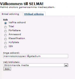 Listan på liknande frågor kan göras oändlig. Det är inte bristen på lämpligt material som är problemet, det är sökningar i SELMA som under en längre tid har varit drabbade av olika systembuggar och diverse missöden. Det pågår ett intensivt arbete kring en ny SELMA med ett nytt utseende och framför allt med enklare sökningar och modernare funktioner. Det är ett omfattande, tidskrävande arbete vilket gör att en sådan förändring inte kan ske på en gång. Det som har blivit det största problemet med sökningar är att det inte längre går att begränsa till en åldersgrupp. Sökningar på 0-3, 4-6, 7-9 fungerar tyvärr inte längre. För tillfället kan man komma runt problemet på två sätt.