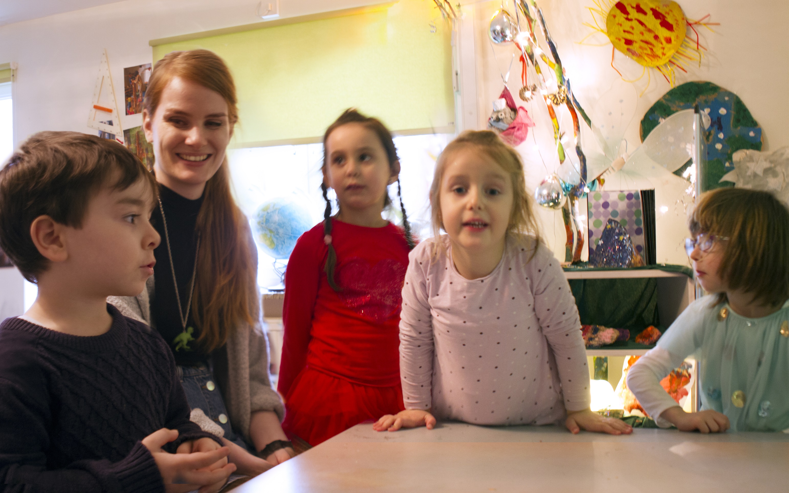 – Att arbeta med samma tema under en längre tid gör att barnen kan fördjupa sig i berättelsen, säger Karin. Vi följer dem i deras olika projekt och tillför material och upplevelser så att barnens projekt skapar mening och nyfikenheten fortsätter.