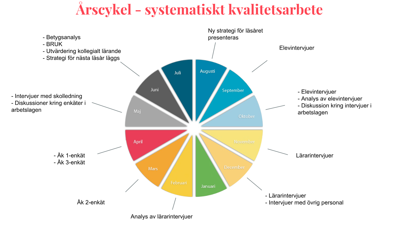 Som inspiration väljer vi denna gång att lägga vårt årshjul som bild. Vi är just nu i färd med att avsluta årets elevintervjuer. Funderingar kring dessa bjuder vi på i nästa inlägg.