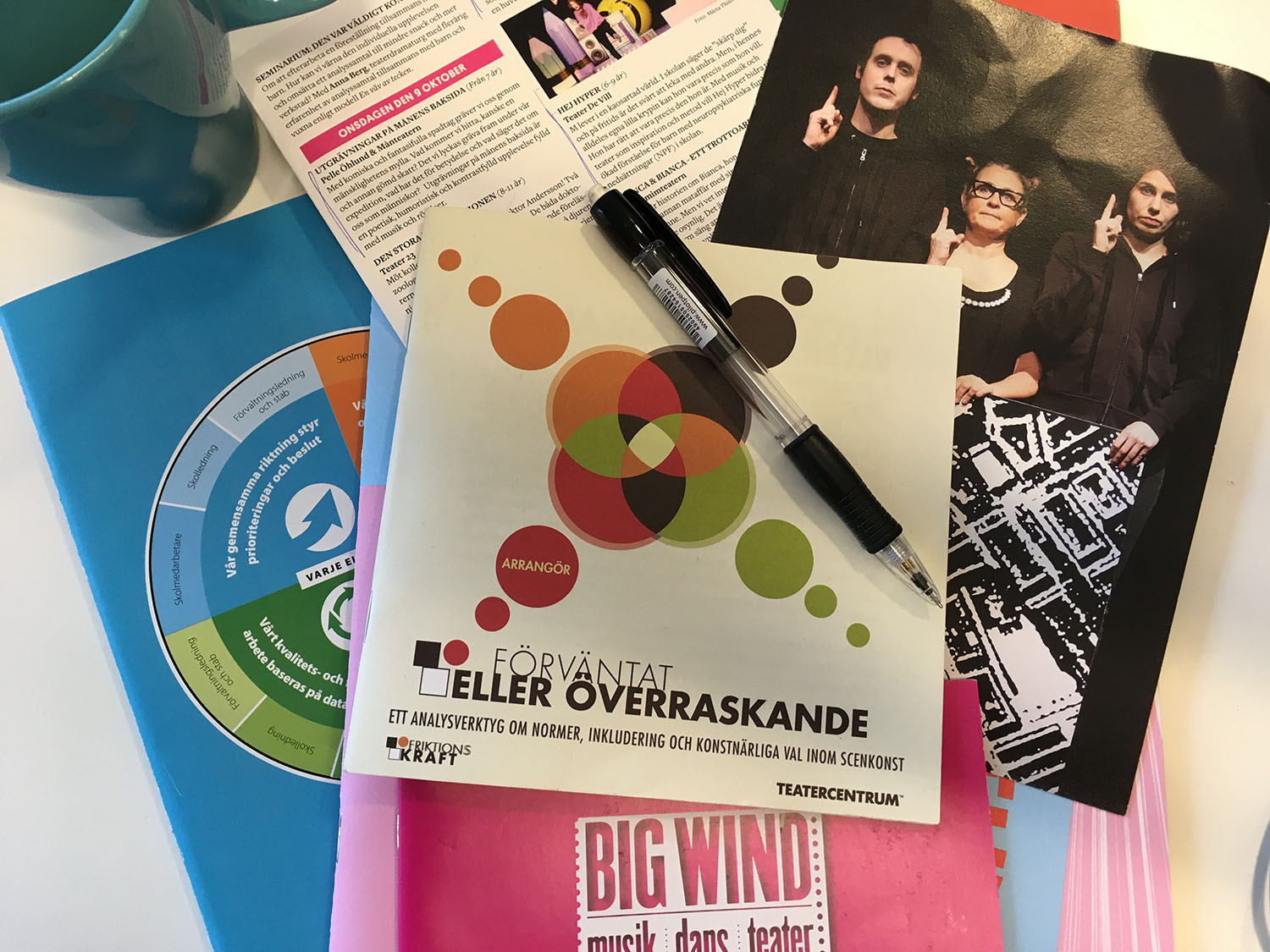 Sagt och gjort, tillsammans med referensgruppen har jag och mina kultursekreterar-kollegor fördjupat oss i ett antal frågeställningar som vi bär med oss när vi ska diskutera innehåll till Kulturkartan. Ett analysverktyg vi fördjupat oss i är ”Förväntat eller överraskande” som tagits fram av Teatercentrum. En liten handbok som ger exempel på aspekter man kan titta på som t ex Vilka roller finns i föreställningen? Vad tillskrivs rollerna för klassbakgrund, ålder, etnicitet eller könsidentitet t ex. Vem har tilldelats vilken roll? Vilken roll bestämmer…? tar initiativ…? blir kär…? bryter mot lagen…? osv.