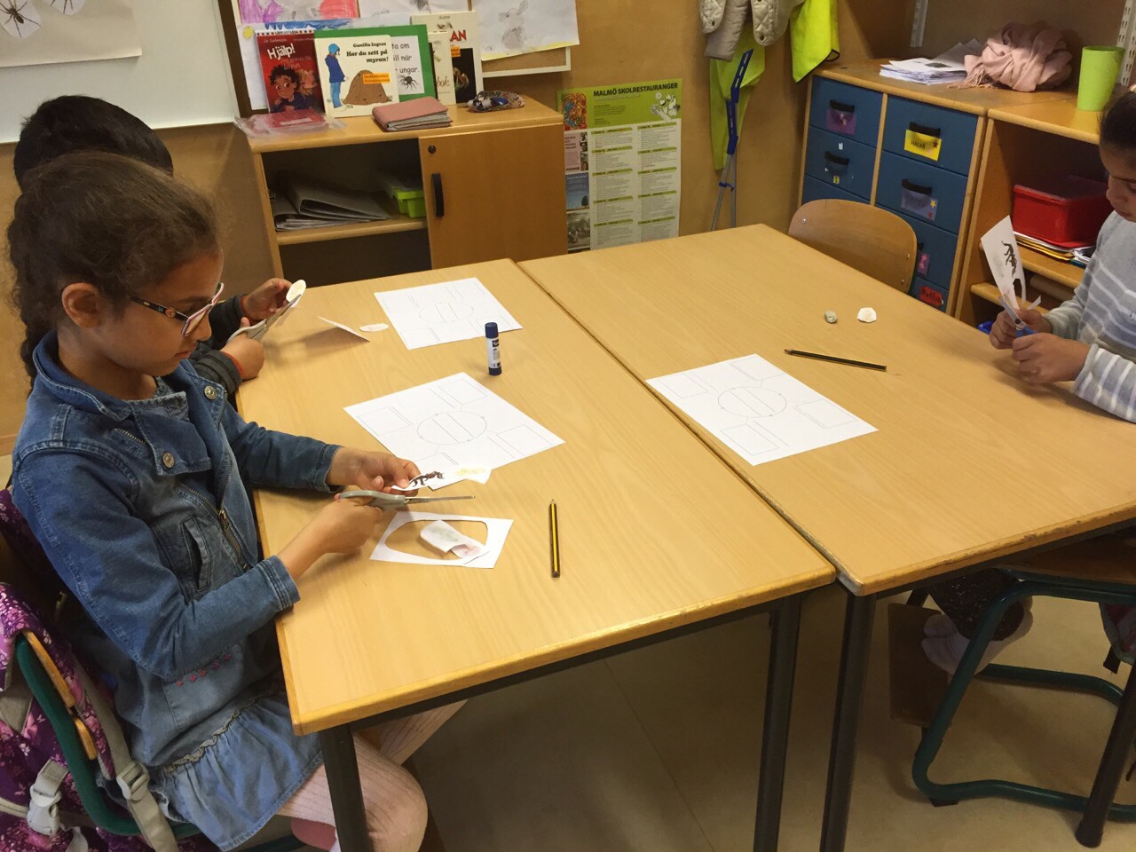 Nu var barnen redo för eget arbete. Fyra bilder, fyra rutor och fyra rader. Allt skulle såklart stå i rätt ordning.