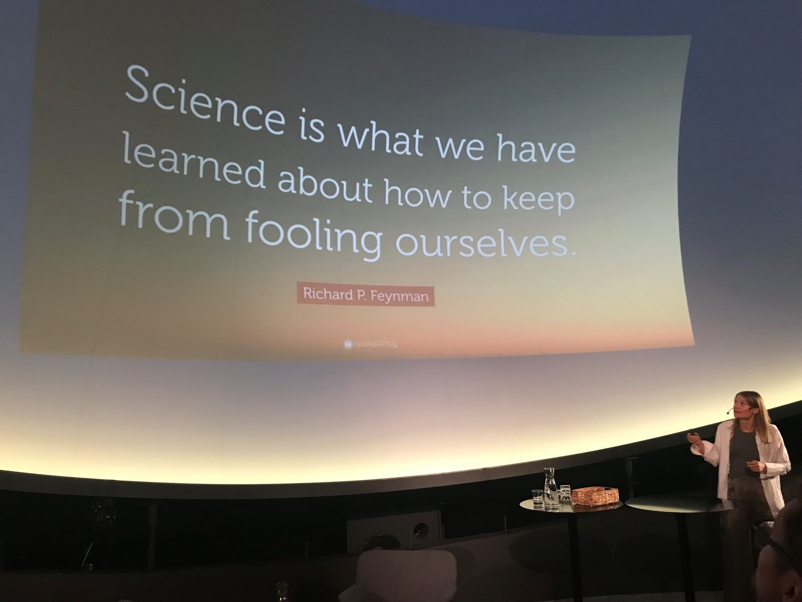 Därefter fick vi höra en intressant föreläsning av Emma Frans, vetenskapsjournalist, som bland annat berättade om hur man skiljer beprövad forskning från den typen av obeprövad forskning som ibland ges stora rubriker, men där en artikel ofta motsäger en annan trots att de handlar om samma ämne.