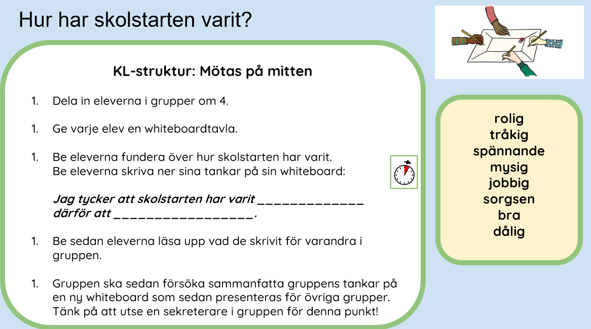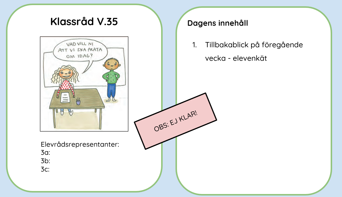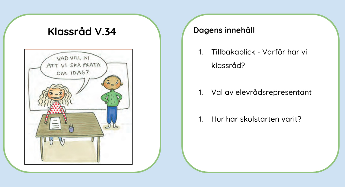 I detta omstarts, nystarts blogginlägg kommer inspiration från Jenny Esbjörnsdotter Karlsson, förstelärare på Rosengårdsskolan. Varför har vi klassråd? är en fråga som Jenny ställde till sina elever nu i uppstarten av terminen. På bilderna ser ni hennes presentation till eleverna. I dessa lektioner använde Jenny sig också av kooperativt lärande-strukturen Mötas i mitten.