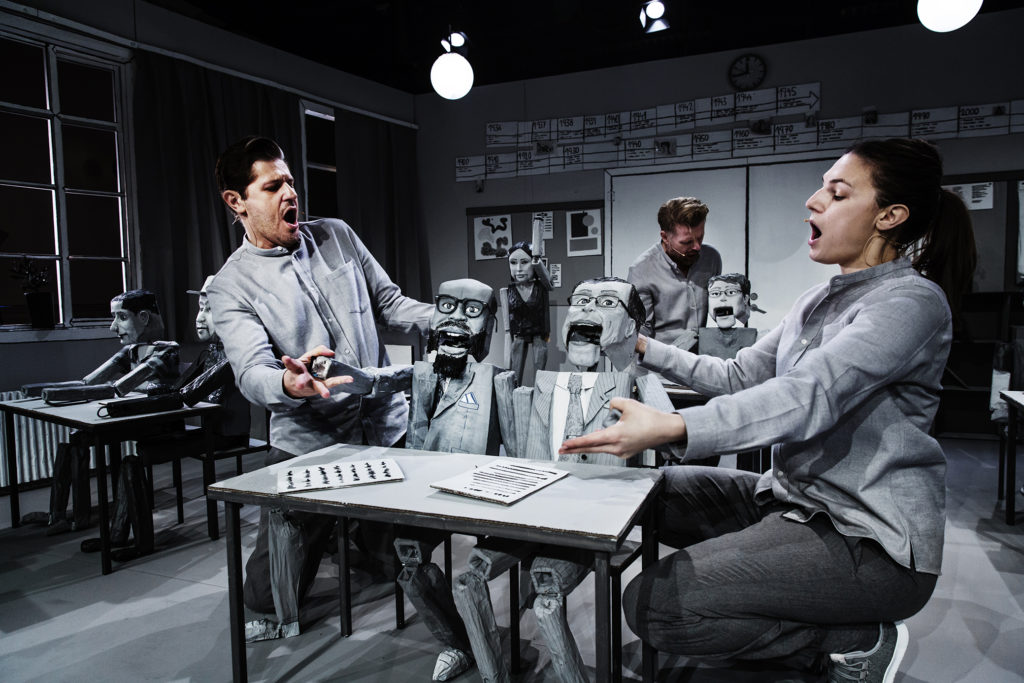 För någon vecka sedan var vi några som gick till Unga Teatern och såg ”Vad gör vi här?” en dockdokumentär om meningen med skolan. Tänk er att den kända bilden ”Blir du lönsam lille vän?” blir levande med meterstora dockor i en helt grå färgskala. Dockorna beskriver tankar, känslor och erfarenheter från elever, lärare, rektorer, politiker och andra om den svenska skolan. Vad är meningen med skolan? Varför finns den? Och hur påverkas människorna som befinner sig där varje dag? Föreställningen bygger på intervjuer med alla dessa grupper och den har fått starka recensioner. Det finns ett fåtal föreställningar kvar på kvällstid och en skolföreställning med ett fåtal platser kvar. Missa inte detta unika tillfälle att gå med dina kollegor eller elever och få er en tankeställare och uppslag och inspiration till diskussion om denna stora institution SKOLAN som vi alla har en relation till.
