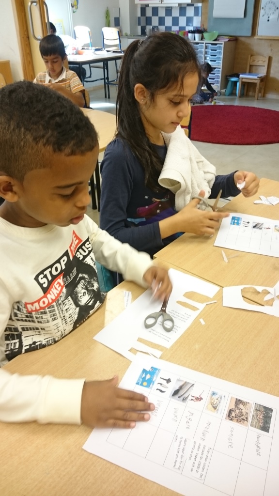 Sedan var det dags att prova på egen hand. Vi hade sett film, läst texter, pratat om orden, förklarat dem, skrivit gemensamma förklaringar, parat ihop ord – bild och förklaring, förklarat muntligt igen. Noggranna förberedelser, ändå ingen självklart uppgift.